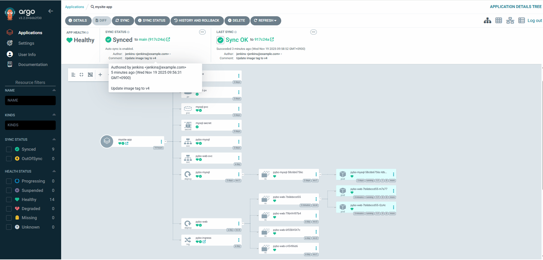Argo CD가 Sync된 상태